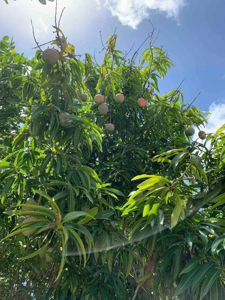 - Please help yourself to delicious mangoes during mango season. Truth be told, I was never a mango fan until I ate one from our tree. They're sweet, juicy, and not stringy. If you're not a mango lover, you will be after one bite. We also kindly ask if you notice any damaged mangoes on the ground, discard them. 🥭