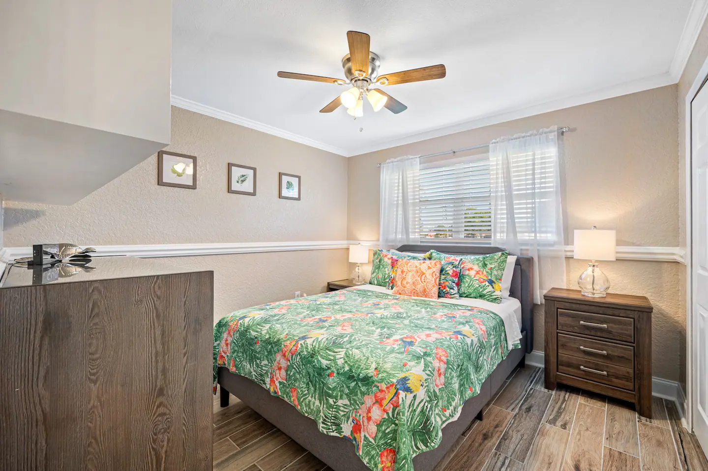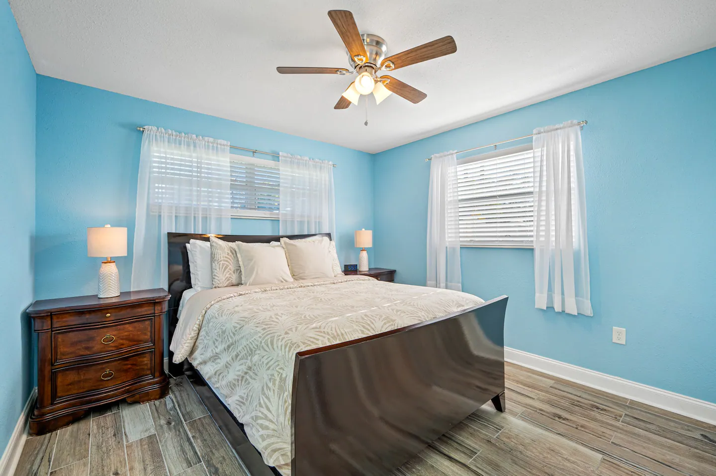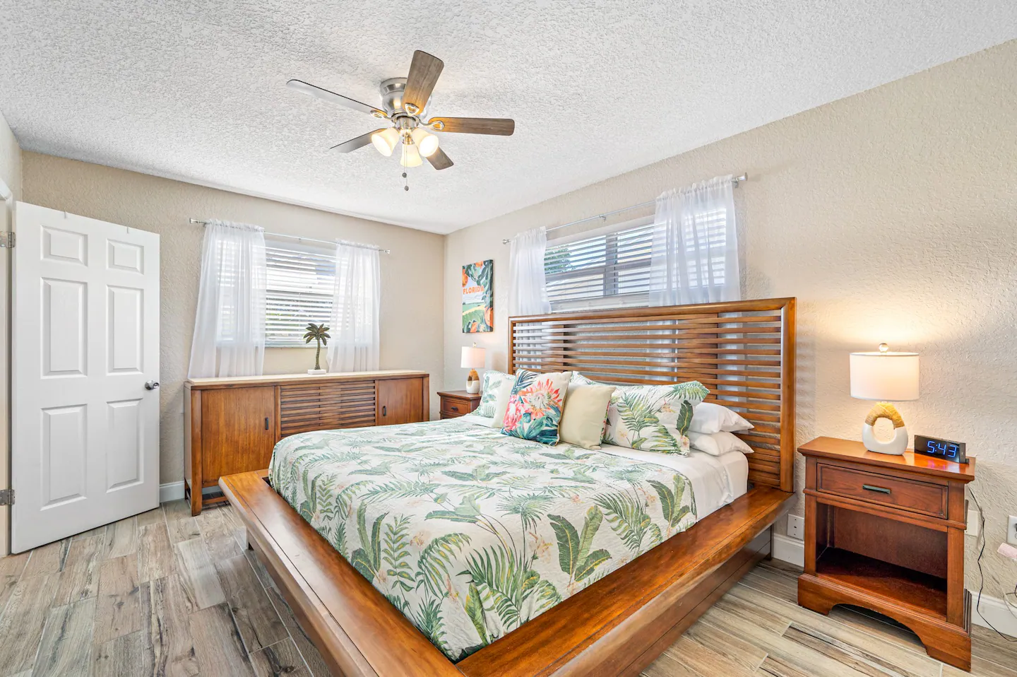 Bedrooms Two and Three: Unwind in these delightful bedrooms, featuring queen-size beds, nightstands, luggage racks, hangers, an iron and ironing board, and calming natural light. Experience a cozy and hassle-free stay in this welcoming environment tailored for comfort and relaxation. 🐚