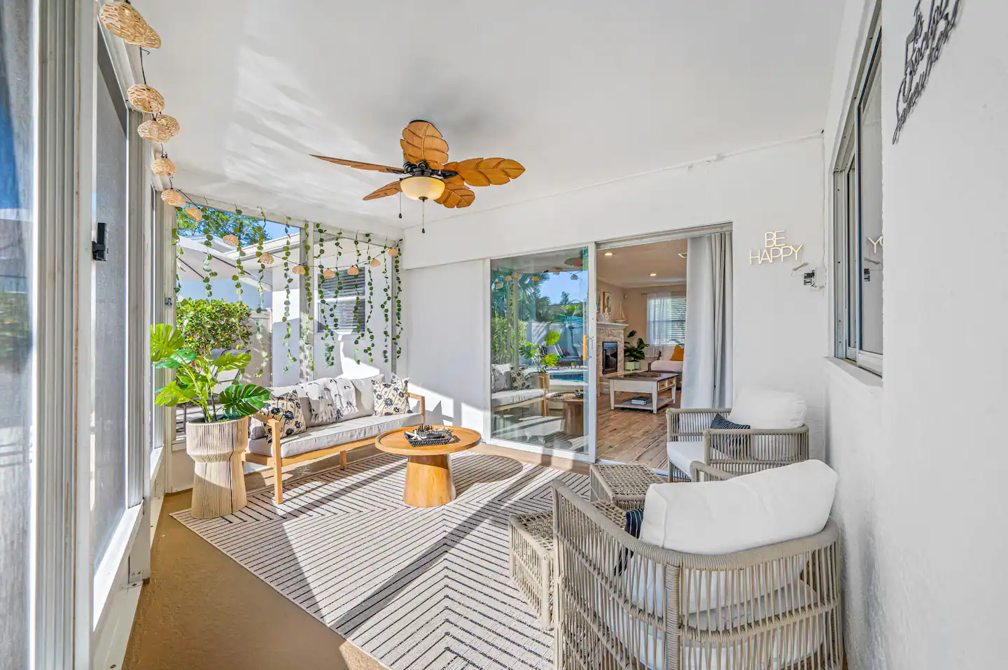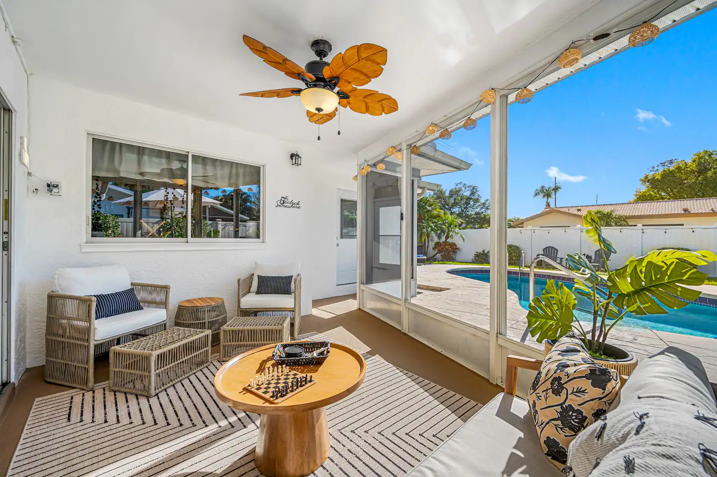 Florida Room: Step into the updated Florida room with tasteful decorations, extra seating, and charming string lights. With a warm ambiance and a neon sign, this is the ideal spot to savor evening cocktails and morning coffees or watch the little ones play. Embrace the cozy vibe for unforgettable moments of relaxation and joy. ✨