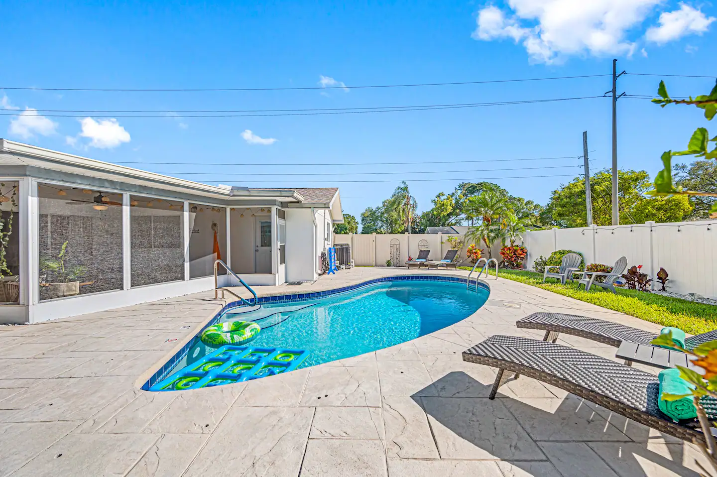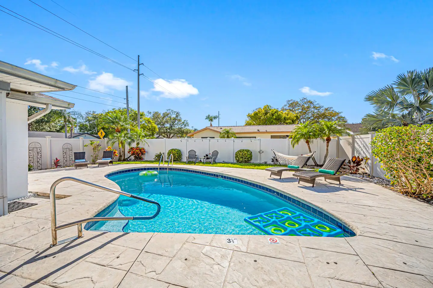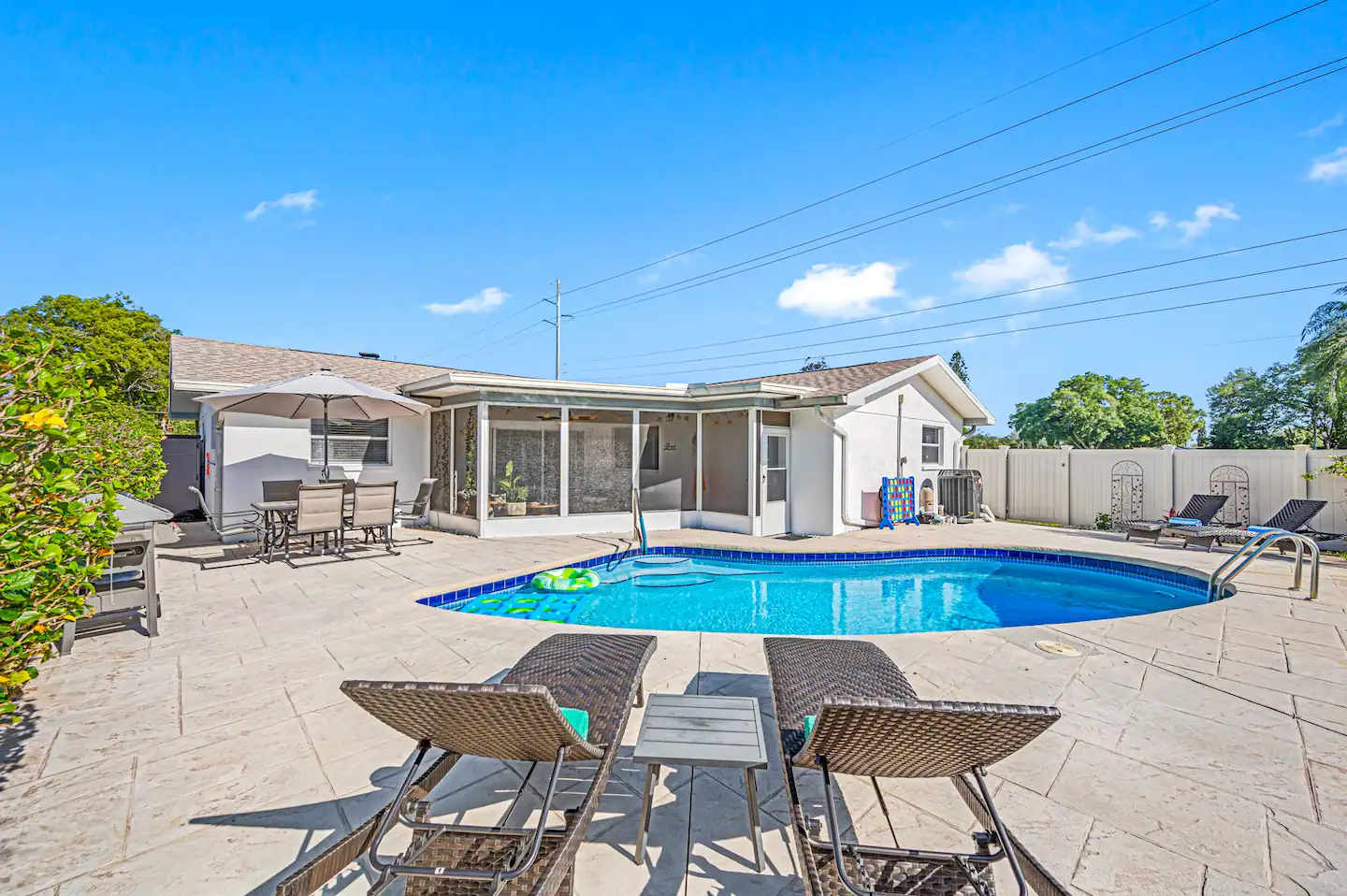 Welcome to Relax at Ridge! Who's up for a beach escape? Enter this inviting three-bedroom, two-bathroom retreat with a backyard oasis that includes a stunning heated pool. Situated in a tranquil neighborhood, this home is conveniently positioned near some of Florida's most exquisite Gulf Coast beaches. ONLY eight minutes away, you'll find Indian Rocks Beach & Indian Shores. So, forget your worries & remember to bring your swimsuit! We provide all the complimentary beach supplies you require. 🌺