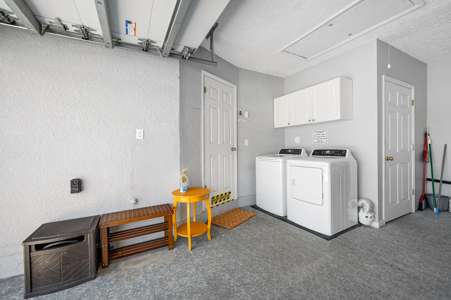- The washing machine and dryer are in the garage, discreetly tucked away. Rest assured that your laundry detergent needs are being taken care of. 🫧